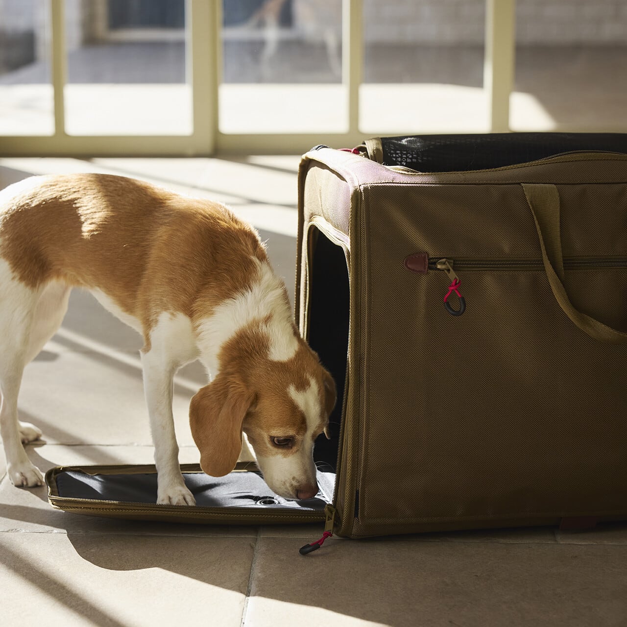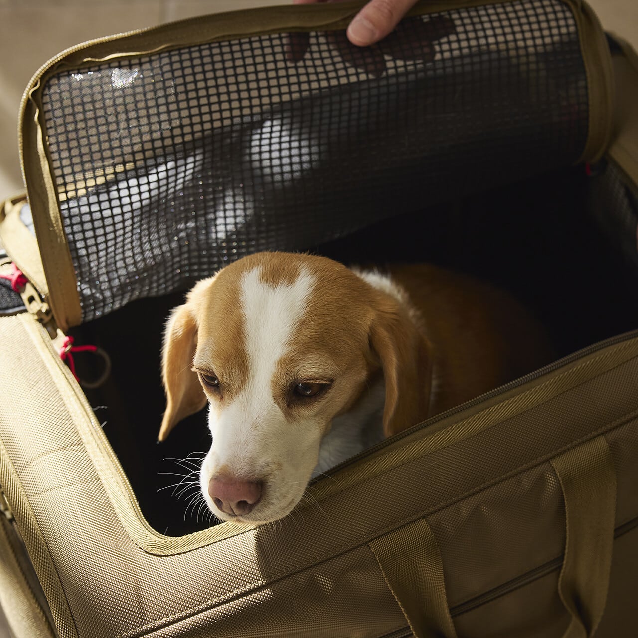 移動中もキャリーの中で伏せができる横型バックパック。胴長のワンちゃんにも最適です。愛犬のサイズに合わせて選べる2サイズ展開で、小型犬の多頭飼いにもおすすめ!ダブルメッシュ構造で安全性も抜群。自立するしっかり設計で、簡易ハウスとしても活用できます。
