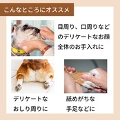 お顔の3分の1ほどの大きさがある犬の瞳に付着するほこりやチリによる汚れや着色、さらに食事後の食べかすやお散歩時の「クン活」によるお口まわりの汚れ、ニオイなど、愛犬のお顔まわりは毎日のケアがオススメです。