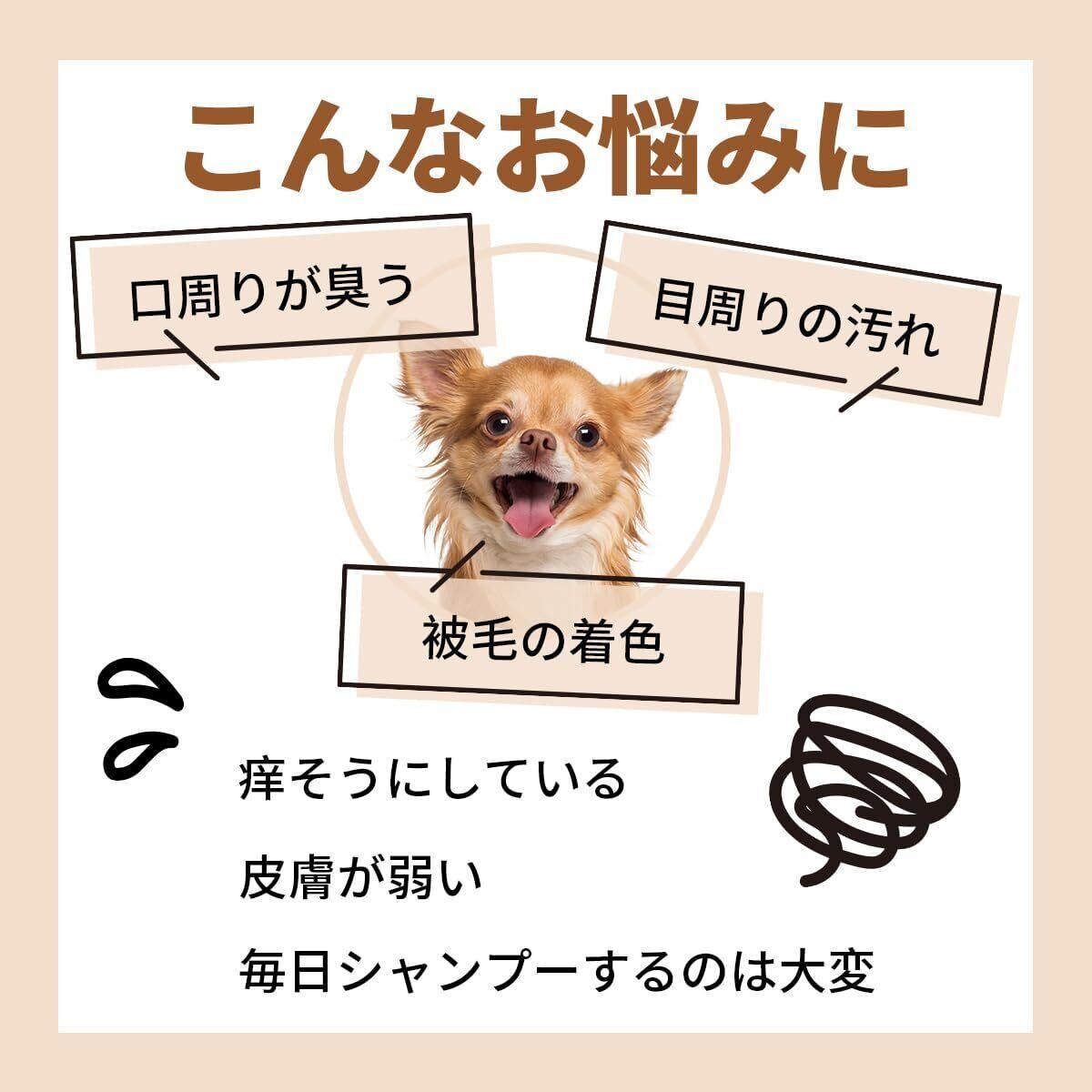 洗い流しのいらない泡シャンプーで愛犬にストレスをかけずすっきり清潔に。きめ細かい泡が表面だけでなく毛穴にまで届きます。自然由来成分100%だからデリケートなお顔周りにも安心してお使いいただけます。