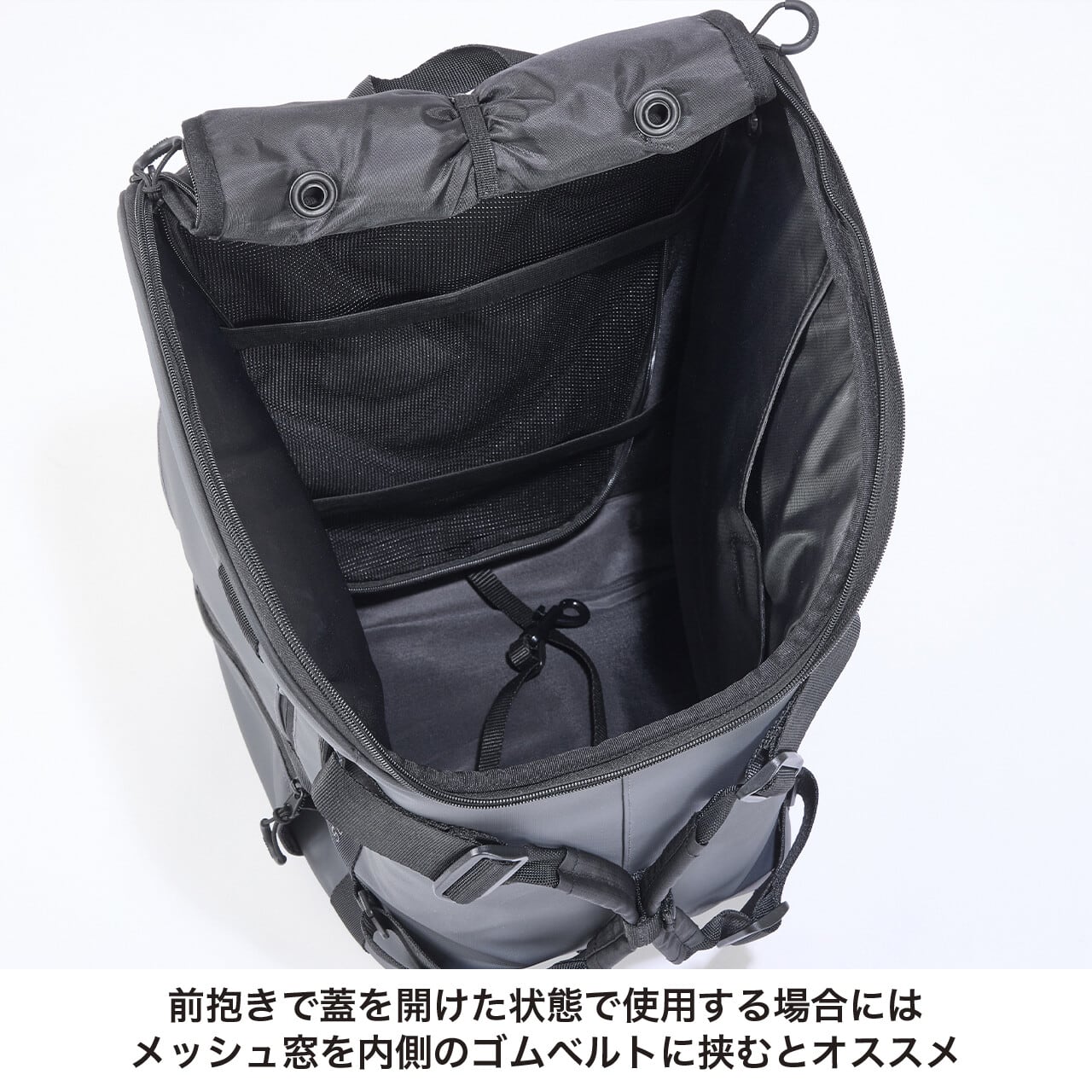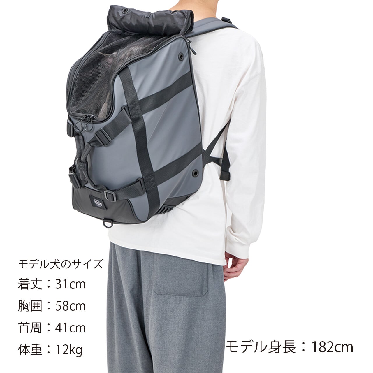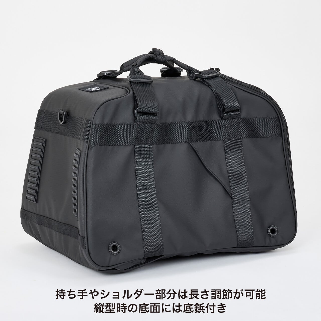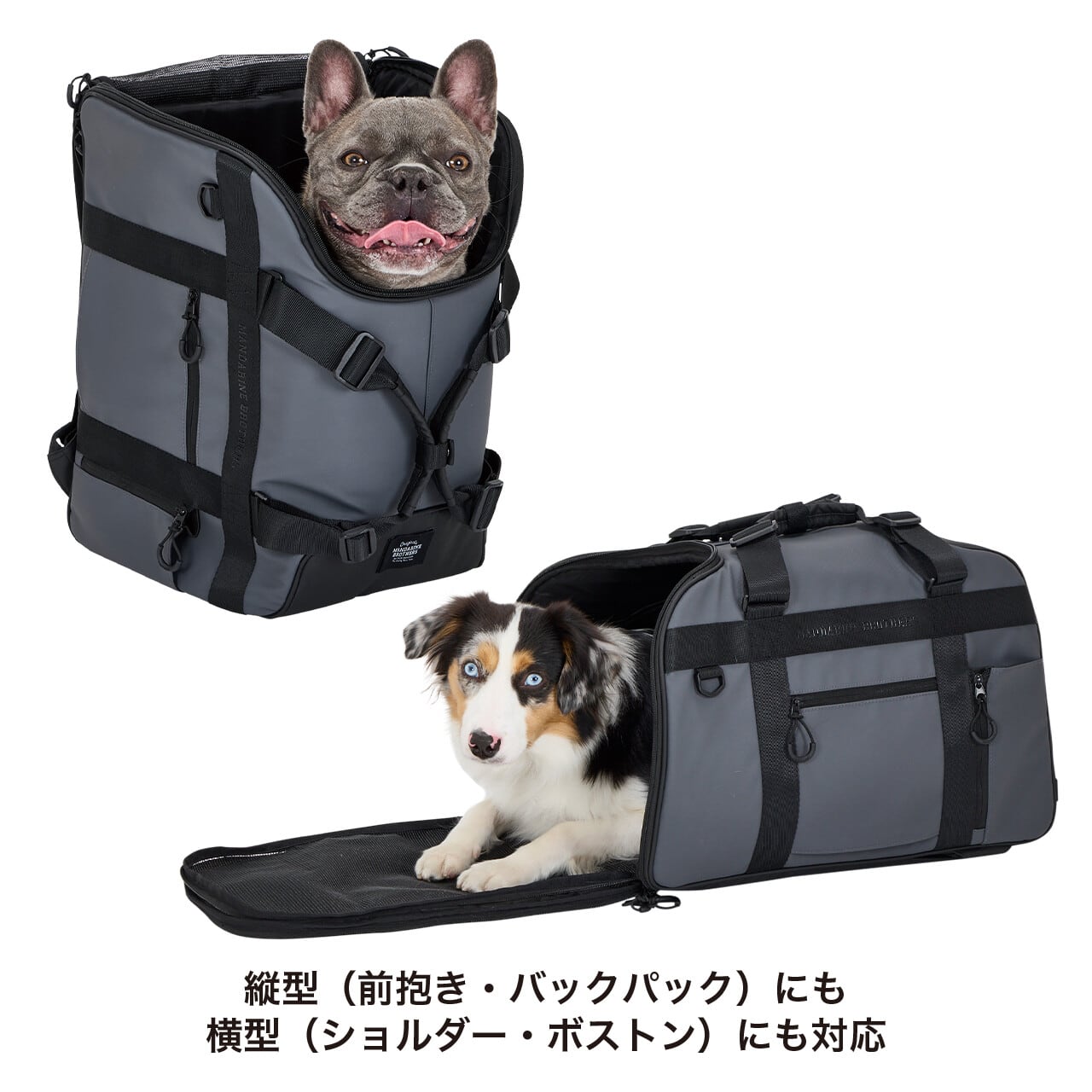 リュックとしてもショルダーバッグとしてもソフトクレートとしてもシーンに合わせて横型にも縦型にも変えられる3way仕様便利な機能性も充実したスマートでスタイリッシュなマルチバッグ ・汚れが付きにくいコーティング生地 ・型崩れしにくいしっかり設計 ・大きなメッシュ窓で通気性抜群・裏地は抗菌防臭生地使用 ・ボトルホルダーポケット付き・持ち手は長さ調整可能 ・3WAY仕様